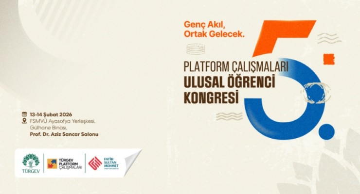 Gençlerin akademik üretimlerini görünür kılmayı ve disiplinler arası düşünceyi güçlendirmeyi hedefleyen TÜRGEV Platform Çalışmaları 5. Ulusal Öğrenci Kongresi, “Genç Akıl, Ortak Gelecek” temasıyla 13–14 Şubat 2026 tarihlerinde FSMVÜ Ayasofya Yerleşkesi’nde gerçekleşecek.